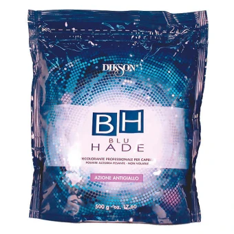 Haar-Decoloration. Blaues Blondierpulver mit gelbhemmender Wirkung, bleicht bis 7 Töne. Vielseitige, sehr cremige Mischung, dient zum kompletten Entfärben oder für Strähnchen, die traditionell oder mit dem Kamm aufgetragen werden. Nicht hautreizend.