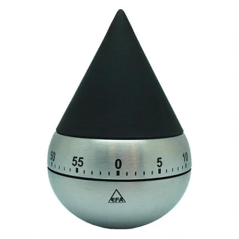 Stylischer, mechanischer Kurzzeit-Wecker, einstellbar von 1 bis 59 Minuten durch einfaches Drehen der schwarzen Timeroberseite. Wenn die eingestellte Zeit abgelaufen ist, ertönt für ca. 3 Sekunden ein Signalton.