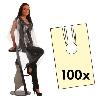 Einmal-Friseurumhänge zum Binden. Polyethylenfolie, transparent. Größe 140 x 100 cm. 100 Stück pro Packung.
