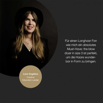 Anwendung: Föhne dein Haar zu 80% trocken und teile anschließend kleine Haarpartien ab. Setze die Bürste am Haaransatz an und richte den Haartrockner mit Zentrierdüse dabei immer auf den Bürstenkörper. Achte auf eine konstante Spannung zwischen Haarbürste und Haaransatz, während Du diese durch die Haare führst.