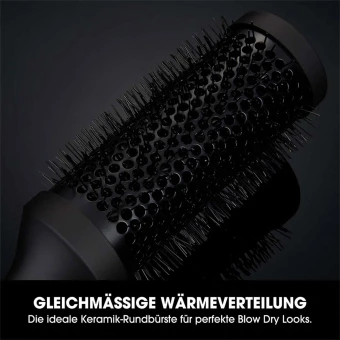 Der Keramikmantel sorgt für eine gleichmäßige Verteilung der Wärme, wodurch voluminöse Föhnstylings kreiert werden können. Die speziell angeordneten Borsten verleihen dem Haar perfekte Griffigkeit – für einfaches Styling von Blow Dry Looks. Der rutschfeste Griff ermöglicht ein sicheres und angenehmes Handling der Bürste.