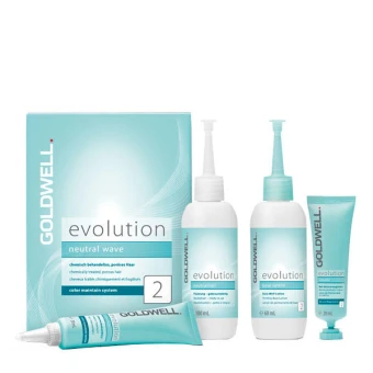 Goldwell Evolution für natürlich schöne Locken mit Sprungkraft und Glanz. Lang bewährte Neutraltechnologie für leistungsstarke und langanhaltende Umformung. Type 2 für chemisch behandeltes, poröses Haar (z. B. heller gefärbtes, blondiertes1 oder hitzegeschädigtes Haar2).