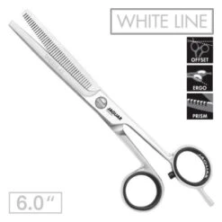 Modellierschere mit 43 Effilierzähnen und feinster Prismenverzahnung für einen präzisen Schnitt.