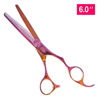 Diese Sonderedition der Silk-Cut Linie lässt sie in einem ganz besonderen Licht dastehen, denn die Schere ändert ihre Farbe je nachdem von wo das Licht einfällt. Mal Pink, mal Blau – dieser Regenbogen-Effekt wurde durch eine ganz besondere und technisch sehr aufwendige Oberflächenbehandlung des Stahls der Schere erreicht und ist ein echter Hingucker.