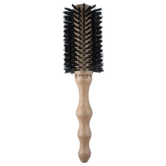 Wildschweinborsten machen das Haar üppig und lebhaft. Rückstände von Styling Produkten werden entfernt, Glanz wird ins Haar gebracht, ohne es elektrostatisch aufzuladen. Stimuliert die Kopfhaut, regt das Haarwachstum an. Hergestellt aus nachhaltigem Mahagoni.