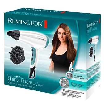 Der Ionen-Generator produziert 90 % mehr Ionen (im Vergleich zu Standard REMINGTON® Haartrocknern). Damit reduziert der Shine Therapy Haartrockner die statische Aufladung, lässt das Haar schneller trocknen und sorgt für unvergleichbaren Glanz.