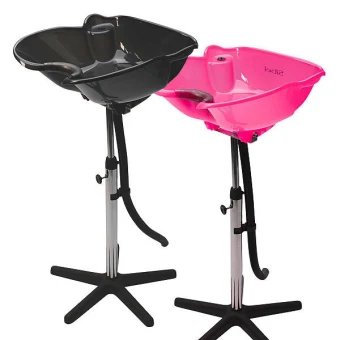 Waschbecken, kippbar, halbtief, aus stoßfestem ABS-Kunststoff, Nackenschoner aus Silikon, Schlauchlänge 2 m.