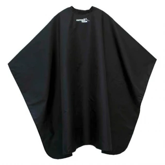 Schwarzer, atmungsaktiver Haarschneideumhang mit 2-fach Hakenverschluss. Größe: ca. 135 x 146 cm. 100 % Polyester.