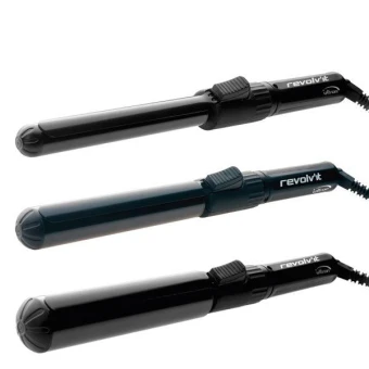 Dank der revolutionären, patentierten Rotationstechnologie zaubert der Revolv’It Lockenstab in Sekundenschnelle perfekte Locken. Sie benötigen nur zwei Finger, um den Silikongriff um 360° zu drehen. Die Zange dreht die Haarsträhne um das Keramik/Turmalin-Ioneneisen und sofort wird das Haar geformt und erhält Glanz. Einfachheit und Unkompliziertheit für den Friseur-Profi! In drei verschiedenen Durchmessern erhältlich.