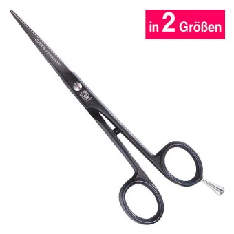 Hochwertiger Solinger Edelstahl heißgeschmiedet mit einer dauerhaften schwarzen Anti-Haftbeschichtung (PTFE), auch für Allergiker geeignet. Chiroform. Eine Schneide microverzahnt, die andere Schneide glatt gehont für einen weichen Gang. Rostfrei, eisgehärtet, regulierbare Schraube, herausnehmbare Einsatzringe, Elastikstopper, abschraubbarer Fingerhaken.
